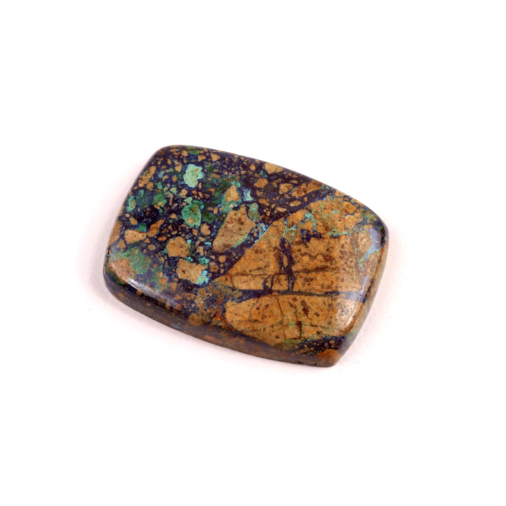Kabošon z přírodního kamene Azurit je úchvatným minerálem, který svým výrazným modrým odstínem přitahuje pozornost. Tento kámen je známý svou hlubokou, sytě modrou barvou s nepravidelnými, světlejšími a zelenými tóny, které jedinečné vzory. Azurit je ceněný nejen pro svůj vzhled, ale i pro svá spojení s duchovním růstem a intuitivním vnímáním.
