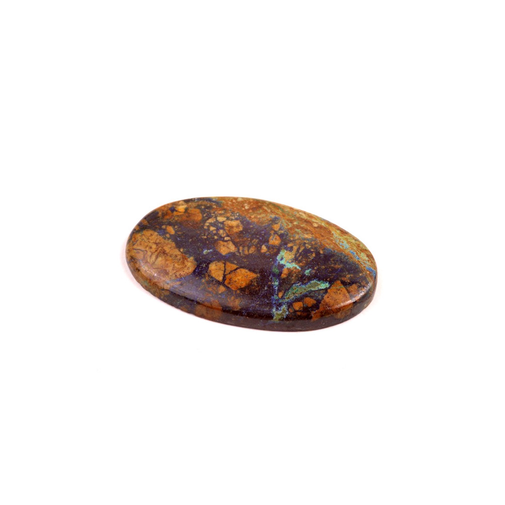 Kabošon z přírodního kamene Azurit je úchvatným minerálem, který svým výrazným modrým odstínem přitahuje pozornost. Tento kámen je známý svou hlubokou, sytě modrou barvou s nepravidelnými, světlejšími a zelenými tóny, které jedinečné vzory. Azurit je ceněný nejen pro svůj vzhled, ale i pro svá spojení s duchovním růstem a intuitivním vnímáním.