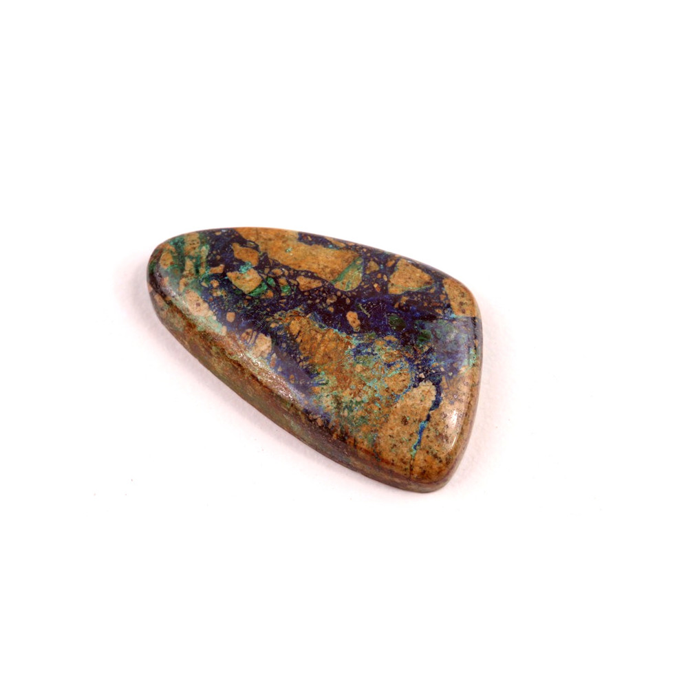 Kabošon z přírodního kamene Azurit je úchvatným minerálem, který svým výrazným modrým odstínem přitahuje pozornost. Tento kámen je známý svou hlubokou, sytě modrou barvou s nepravidelnými, světlejšími a zelenými tóny, které jedinečné vzory. Azurit je ceněný nejen pro svůj vzhled, ale i pro svá spojení s duchovním růstem a intuitivním vnímáním.
