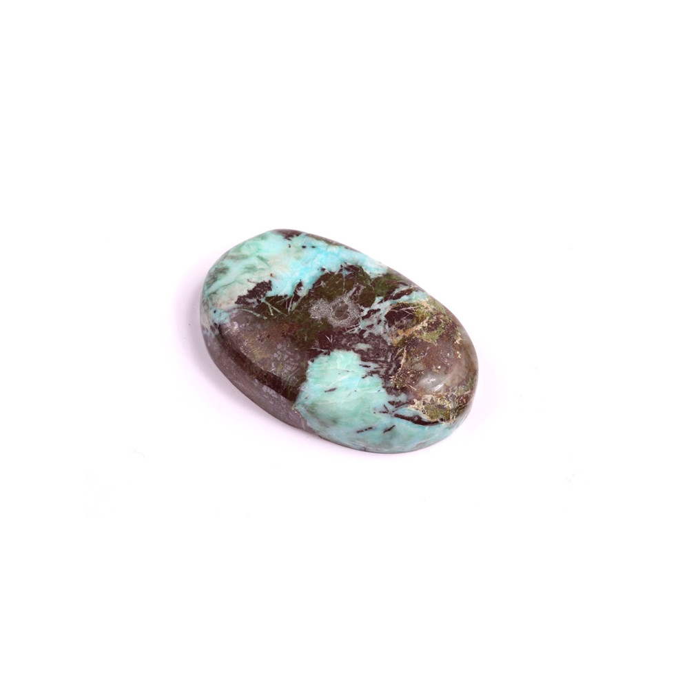 Kabošon z přírodního kamene Azurit Turquoise je fascinující kombinací dvou úchvatných minerálů – azuritu a tyrkysu. Tento klenot spojuje hluboké tóny hnědé, tyrkysově modré a jemné zelené, vytvářející unikátní přírodní mozaiku, která upoutá na první pohled. Přirozená textura a syté odstíny dělají z tohoto kabošonu jedinečný šperk, který vnese do vašich návrhů přírodní krásu a eleganci.