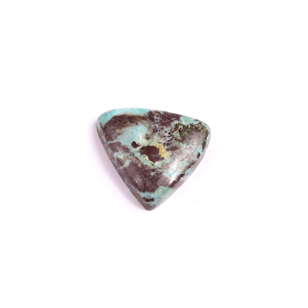 Kabošon z přírodního kamene Azurit Turquoise je fascinující kombinací dvou úchvatných minerálů – azuritu a tyrkysu. Tento klenot spojuje hluboké tóny hnědé, tyrkysově modré a jemné zelené, vytvářející unikátní přírodní mozaiku, která upoutá na první pohled. Přirozená textura a syté odstíny dělají z tohoto kabošonu jedinečný šperk, který vnese do vašich návrhů přírodní krásu a eleganci.