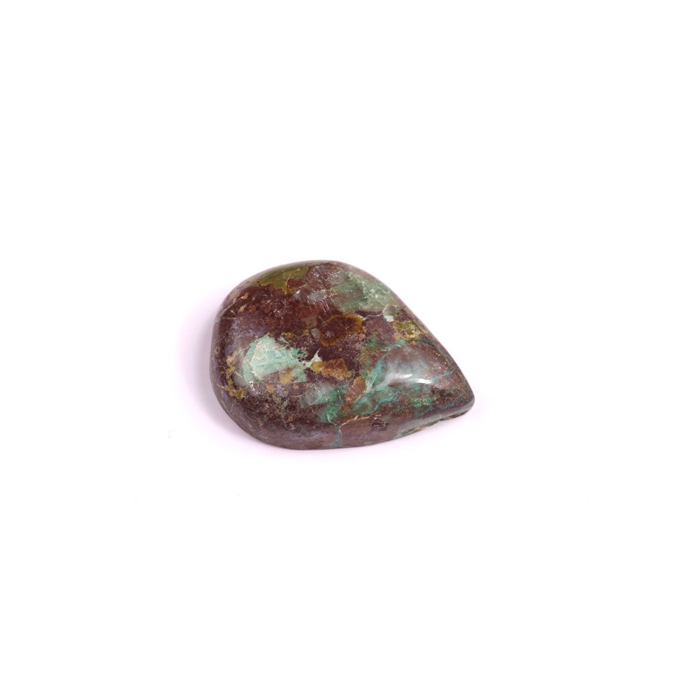 Kabošon z přírodního kamene Azurit Turquoise je fascinující kombinací dvou úchvatných minerálů – azuritu a tyrkysu. Tento klenot spojuje hluboké tóny hnědé, tyrkysově modré a jemné zelené, vytvářející unikátní přírodní mozaiku, která upoutá na první pohled. Přirozená textura a syté odstíny dělají z tohoto kabošonu jedinečný šperk, který vnese do vašich návrhů přírodní krásu a eleganci.