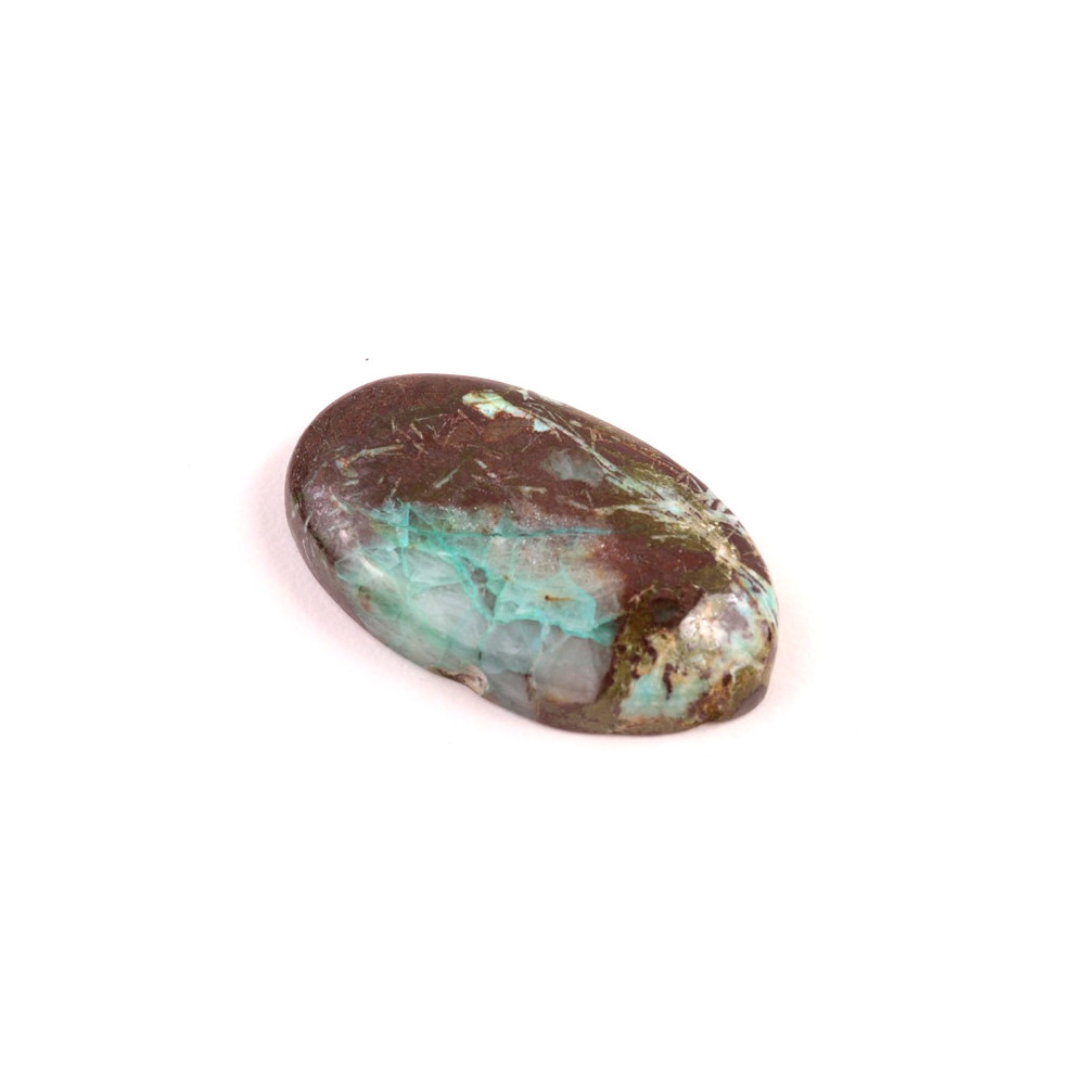 Kabošon z přírodního kamene Azurit Turquoise je fascinující kombinací dvou úchvatných minerálů – azuritu a tyrkysu. Tento klenot spojuje hluboké tóny hnědé, tyrkysově modré a jemné zelené, vytvářející unikátní přírodní mozaiku, která upoutá na první pohled. Přirozená textura a syté odstíny dělají z tohoto kabošonu jedinečný šperk, který vnese do vašich návrhů přírodní krásu a eleganci.