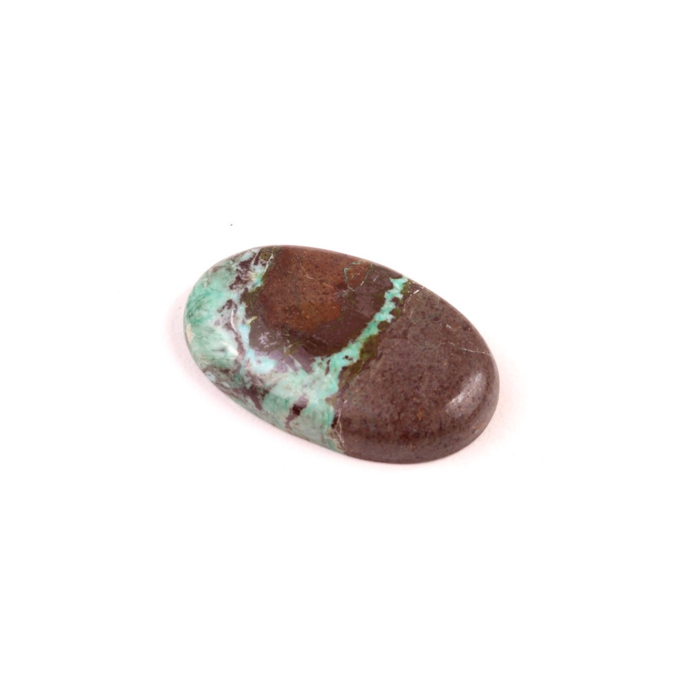 Kabošon z přírodního kamene Azurit Turquoise je fascinující kombinací dvou úchvatných minerálů – azuritu a tyrkysu. Tento klenot spojuje hluboké tóny hnědé, tyrkysově modré a jemné zelené, vytvářející unikátní přírodní mozaiku, která upoutá na první pohled. Přirozená textura a syté odstíny dělají z tohoto kabošonu jedinečný šperk, který vnese do vašich návrhů přírodní krásu a eleganci.