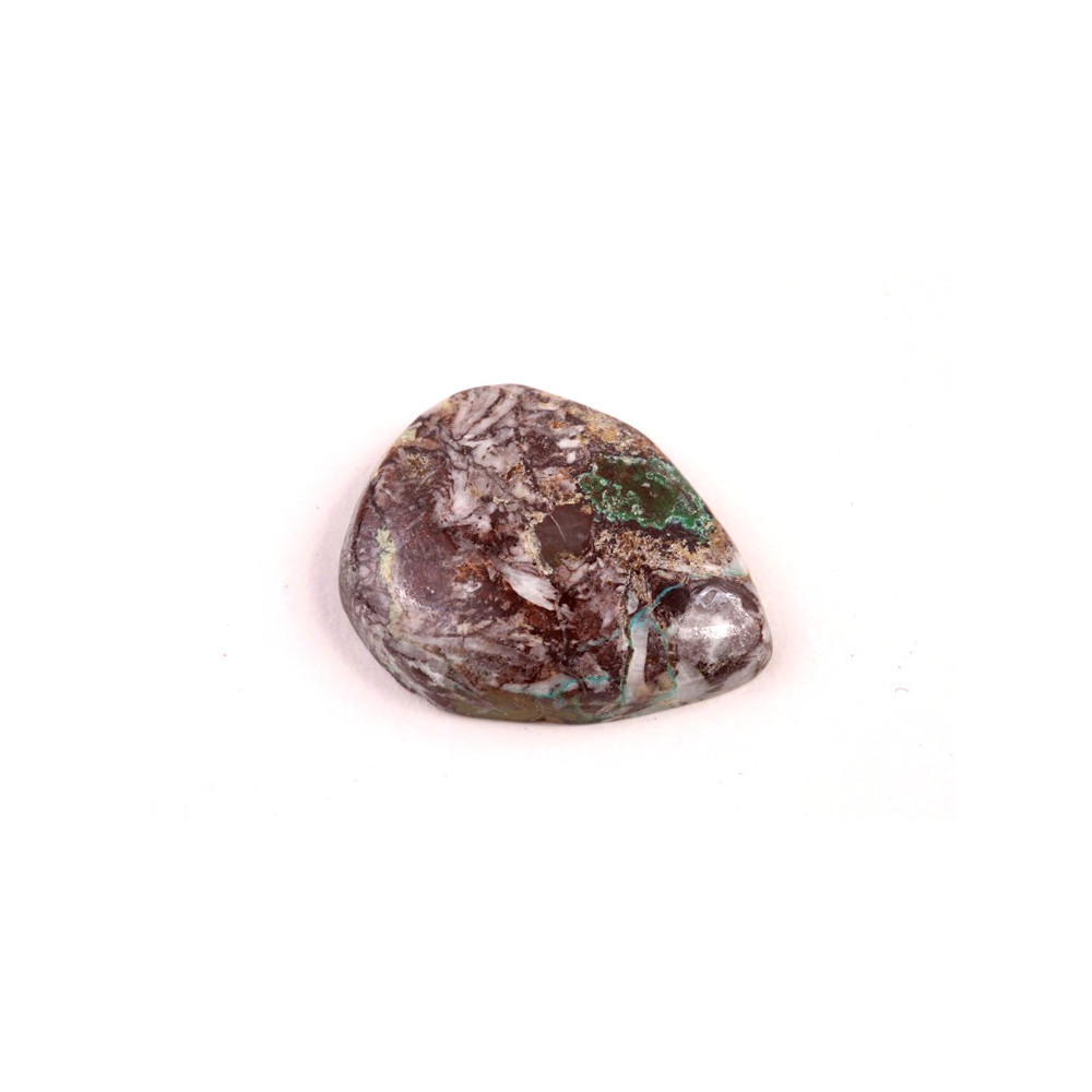 Kabošon z přírodního kamene Azurit Turquoise je fascinující kombinací dvou úchvatných minerálů – azuritu a tyrkysu. Tento klenot spojuje hluboké tóny hnědé, tyrkysově modré a jemné zelené, vytvářející unikátní přírodní mozaiku, která upoutá na první pohled. Přirozená textura a syté odstíny dělají z tohoto kabošonu jedinečný šperk, který vnese do vašich návrhů přírodní krásu a eleganci.