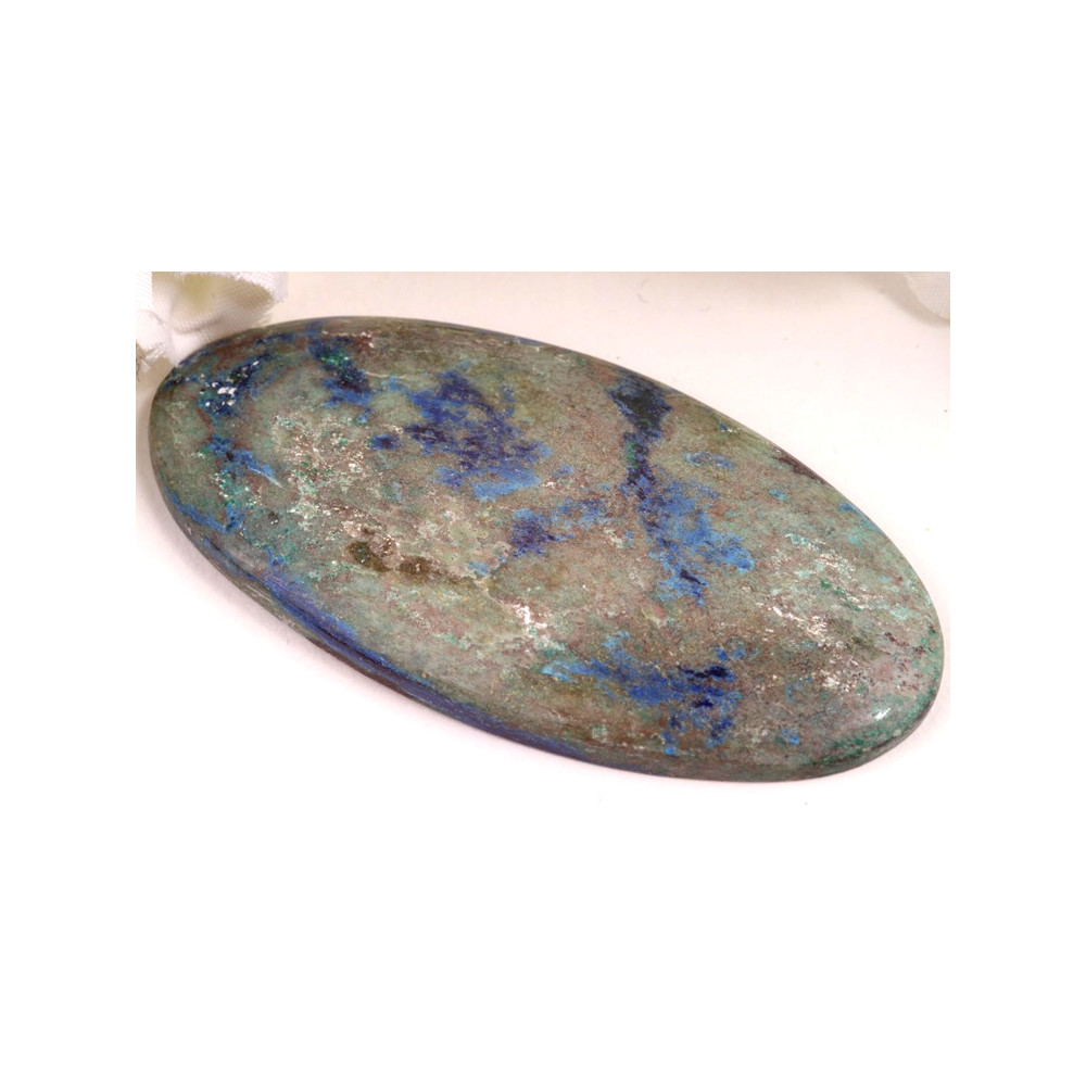 Kabošon z přírodního kamene Azurit je úchvatným minerálem, který svým výrazným modrým odstínem přitahuje pozornost. Tento kámen je známý svou hlubokou, sytě modrou barvou s nepravidelnými, světlejšími a zelenými tóny, které jedinečné vzory. Azurit je ceněný nejen pro svůj vzhled, ale i pro svá spojení s duchovním růstem a intuitivním vnímáním.