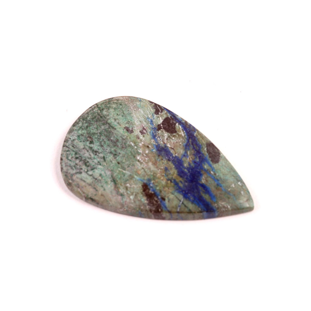 Kabošon z přírodního kamene Azurit je úchvatným minerálem, který svým výrazným modrým odstínem přitahuje pozornost. Tento kámen je známý svou hlubokou, sytě modrou barvou s nepravidelnými, světlejšími a zelenými tóny, které jedinečné vzory. Azurit je ceněný nejen pro svůj vzhled, ale i pro svá spojení s duchovním růstem a intuitivním vnímáním.