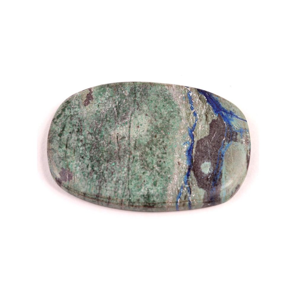 Kabošon z přírodního kamene Azurit je úchvatným minerálem, který svým výrazným modrým odstínem přitahuje pozornost. Tento kámen je známý svou hlubokou, sytě modrou barvou s nepravidelnými, světlejšími a zelenými tóny, které jedinečné vzory. Azurit je ceněný nejen pro svůj vzhled, ale i pro svá spojení s duchovním růstem a intuitivním vnímáním.