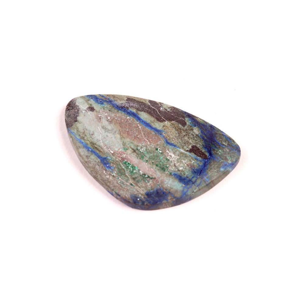 Kabošon z přírodního kamene Azurit je úchvatným minerálem, který svým výrazným modrým odstínem přitahuje pozornost. Tento kámen je známý svou hlubokou, sytě modrou barvou s nepravidelnými, světlejšími a zelenými tóny, které jedinečné vzory. Azurit je ceněný nejen pro svůj vzhled, ale i pro svá spojení s duchovním růstem a intuitivním vnímáním.