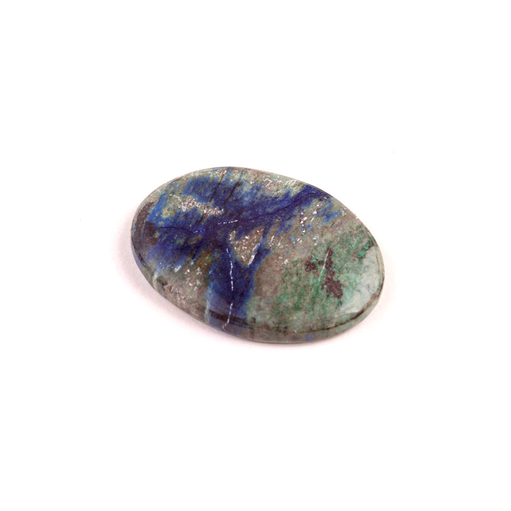 Kabošon z přírodního kamene Azurit je úchvatným minerálem, který svým výrazným modrým odstínem přitahuje pozornost. Tento kámen je známý svou hlubokou, sytě modrou barvou s nepravidelnými, světlejšími a zelenými tóny, které jedinečné vzory. Azurit je ceněný nejen pro svůj vzhled, ale i pro svá spojení s duchovním růstem a intuitivním vnímáním.