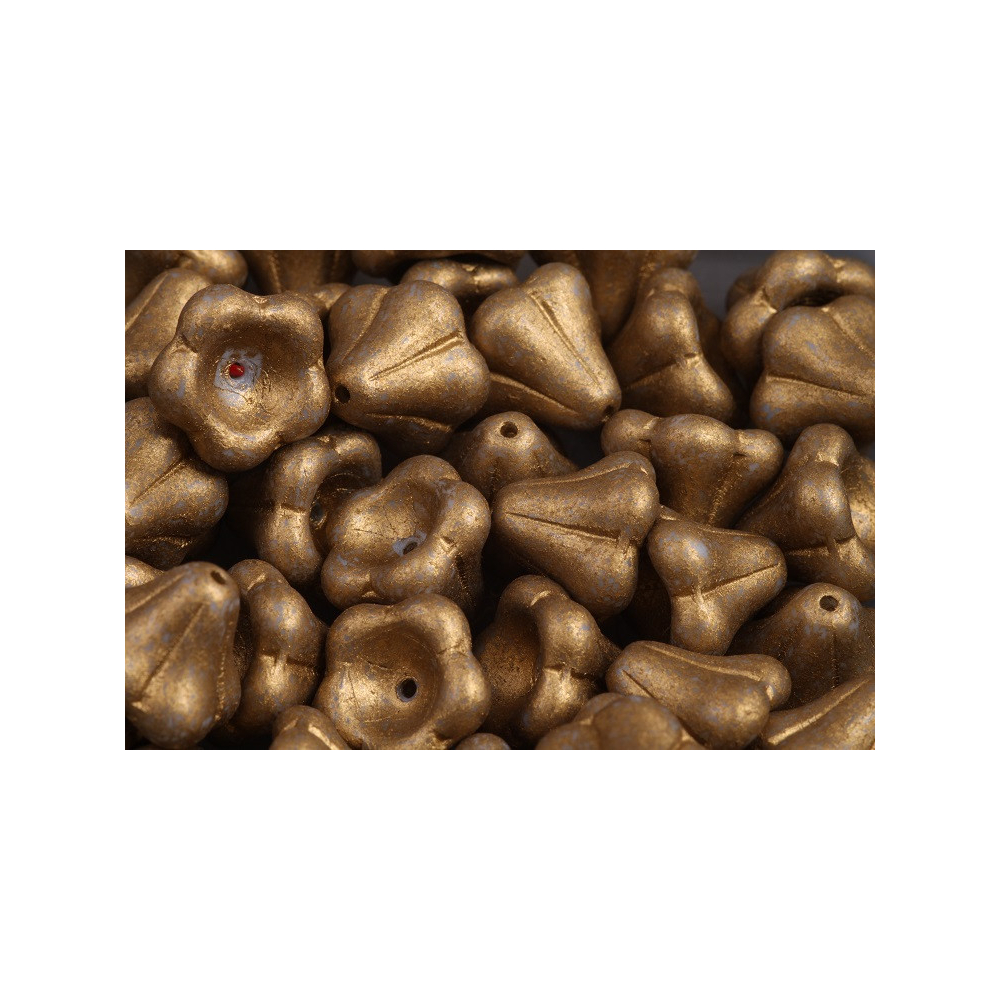 Starozlatá patina s jemným nádechem starožitného kovu definuje tyto skleněné korálky Květinové zvonky, které jsou nepostradatelným prvkem pro romantické a vintage šperky. Designový tvar Bell Flower Beads 11 x 13 mm od renomovaného českého výrobce Rutkovsky připomíná rozevřený květ nebo sukýnku, což dodává výslednému dílu vítanou plasticitu a hloubku. Díky preciznímu zpracování z českého skla vynikají korálky svou stálostí a unikátním charakterem, který oceníte při tvorbě originálních náušnic i bohatých náhrdelníků.