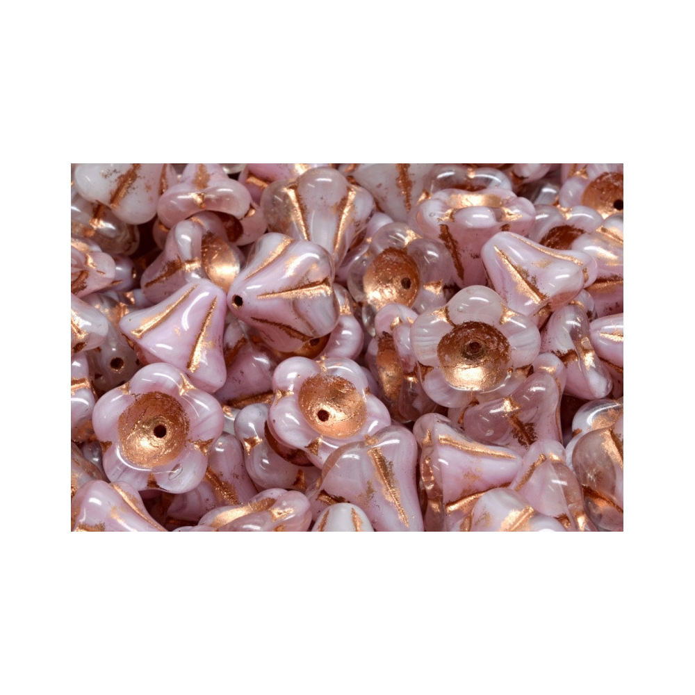 Jemná růžová barva v kombinaci s precizním zpracováním definuje tyto české skleněné korálky od renomovaného výrobce Rutkovsky. Tvar známý jako Bell Flower Beads nebo Květinové zvonky o rozměru 11 x 13 mm přináší do tvorby organický prvek inspirovaný přírodou. Díky detailnímu žebrování zvýrazněnému měděným dekorem v rýhách vynikne každá křivka tohoto unikátního skleněného komponentu.