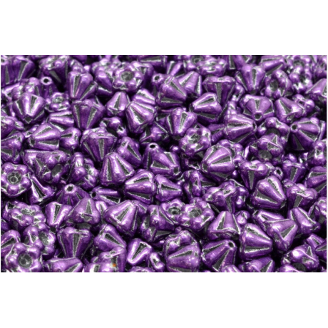 Fialová barva s výrazným metalickým leskem propůjčuje těmto drobným prvkům luxusní vzhled, který okamžitě vynikne v každém autorském šperku. Tyto Bell Flower Beads 4 x 6 mm pocházejí z proslulé české dílny Rutkovský, přičemž jejich precizní žebrování a tmavší patina v prohlubních zdůrazňují hloubku barvy a rostlinný detail. Skvěle se hodí pro tvorbu jemných náušnic nebo jako prostorový prvek v náramcích, kde se často využívají i české broušené ohňovky pro vytvoření zářivých středů květinových motivů.