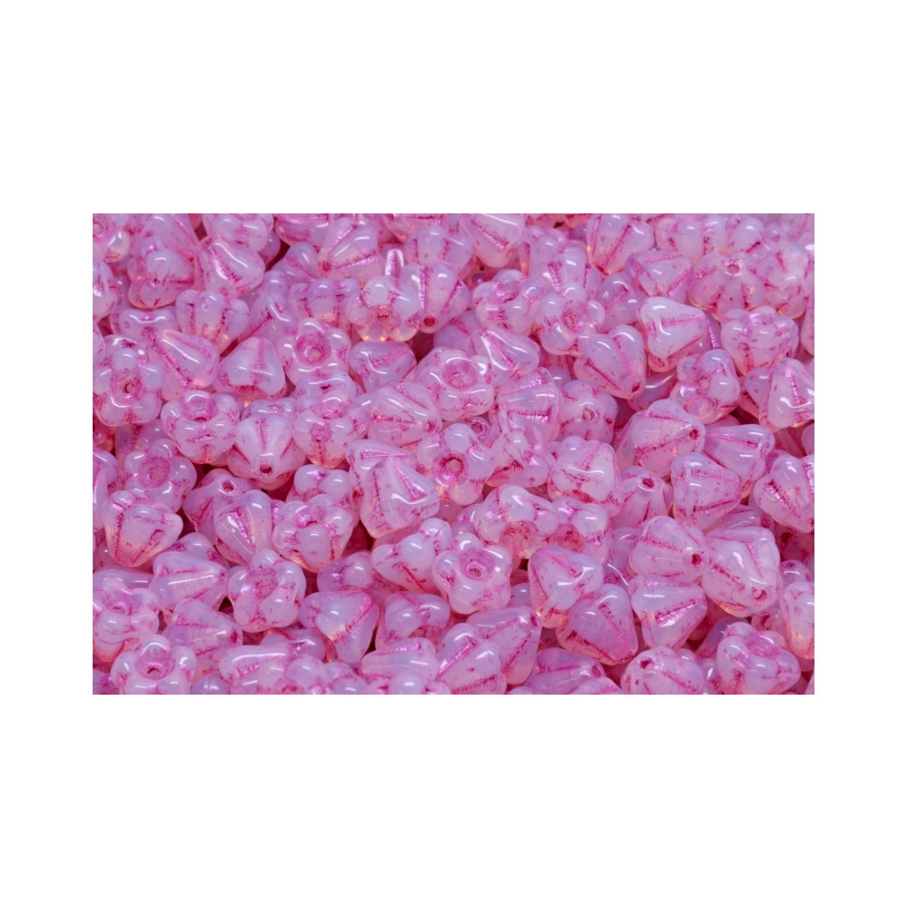Květinové zvonky o rozměru 4 x 6 mm v barevné variantě s kódem 43807 jsou díky svému mléčnému podkladu nesmírně variabilní při ladění palety barev. Tato růžová barva krásně ladí s čirým crystalem pro vzdušný vzhled, nebo ji můžete v rámci neutrálních akcentů doplnit dalšími jemnými tóny, zatímco pro výrazný kontrast ji zkombinujte se safírově modrou. Při tvorbě prostorových květů využijte jako pestíky a středové prvky české broušené ohňovky, které dodají celému šperku potřebný třpyt a hloubku, čímž podtrhnou detailní tvar zvonků.