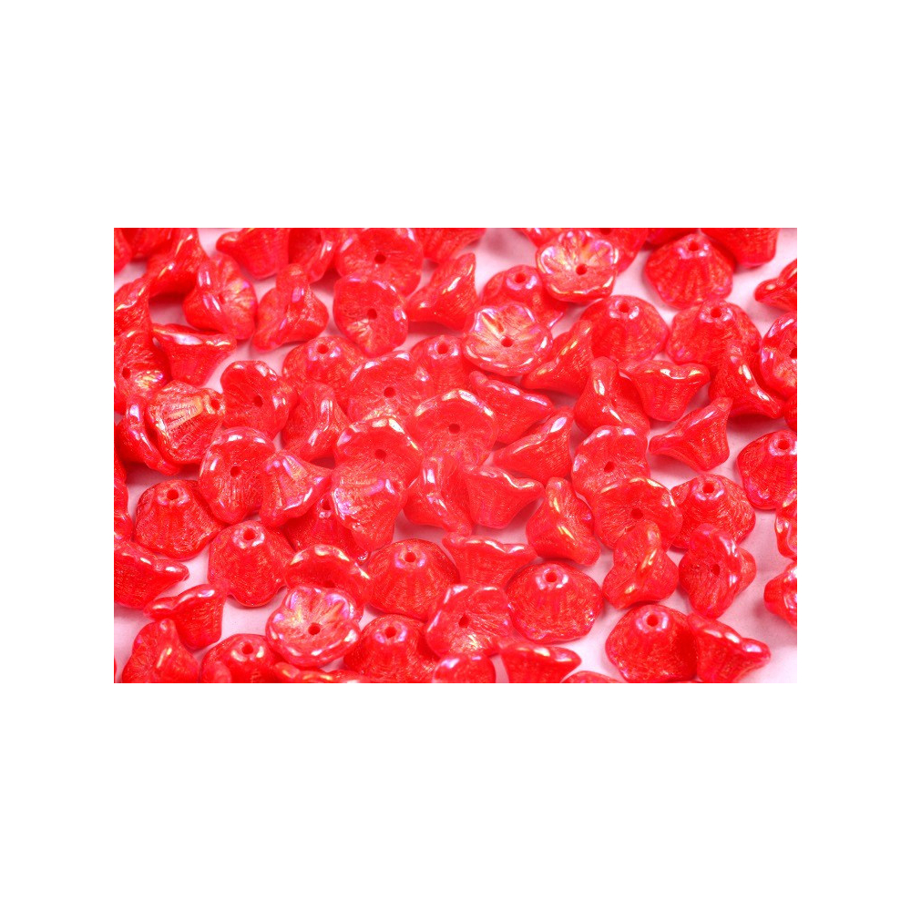 Bell Flower Cup Beads 7x5 - Květinový zvonek OPAQUE LIGHT CORAL RED RAINBOW IRIS 93180/21405