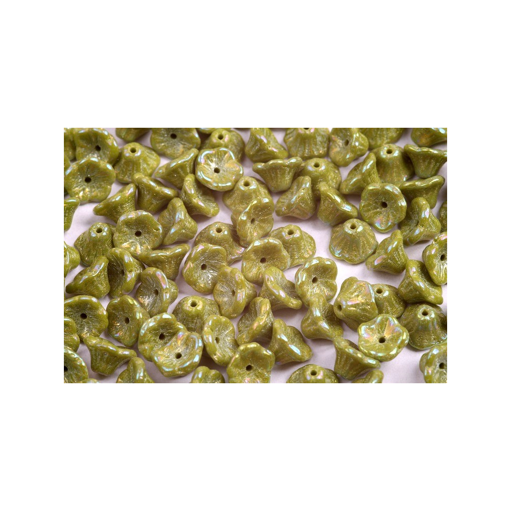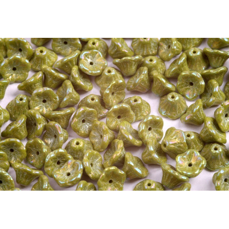 Bell Flower Cup Beads 7x5 - Květinový zvonek OPAQUE OLIVE RAINBOW IRIS 53420/21405