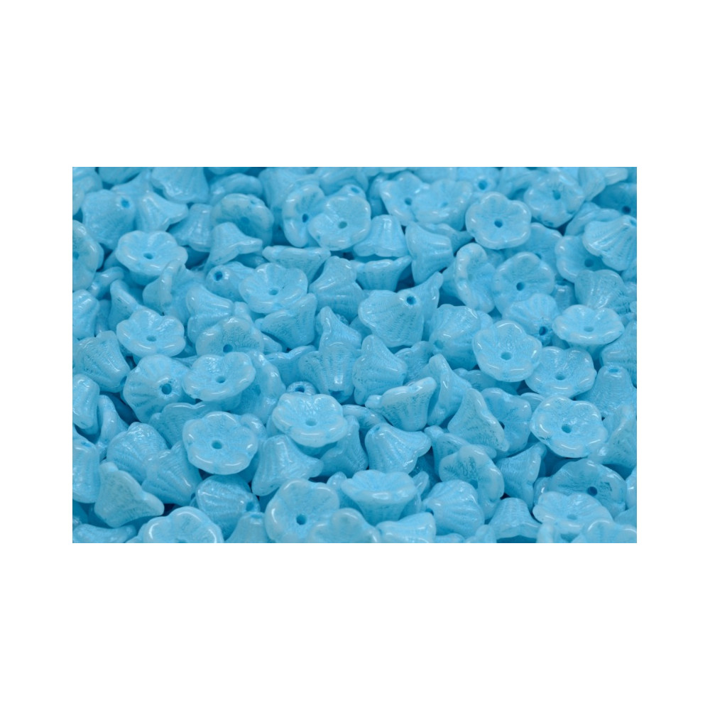 Světle modrá barva v odstínu jasné oblohy dodává těmto skleněným korálkům ve tvaru Bell Flower Cup svěží a jemný vzhled. Mačkané korálky od tradičního českého výrobce Rutkovsky vynikají precizním zpracováním a sytou pigmentací, která je pro české sklo typická. Povrch s jemným leskem zvýrazňuje reliéf okvětních lístků a činí z každého kusu originální prvek pro vaši autorskou tvorbu.