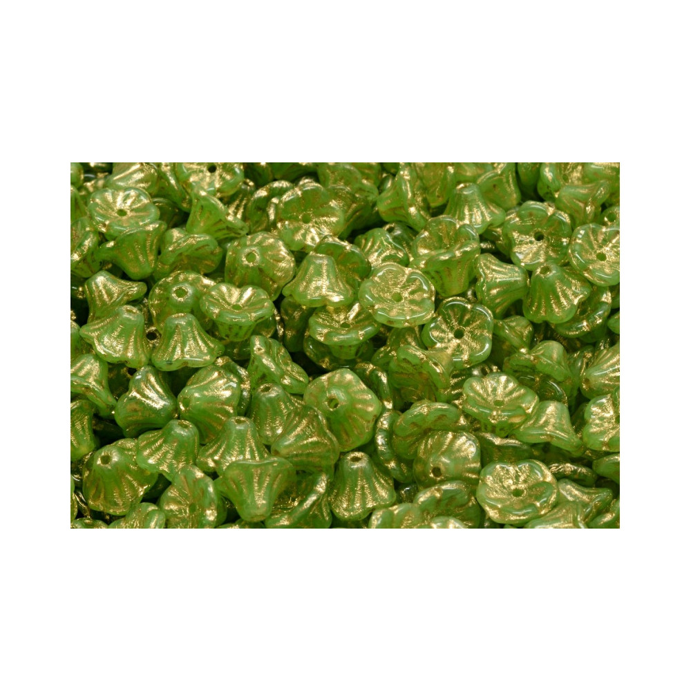 Bell Flower Cup Beads 7x5 - Květinový zvonek OPAQUE OLIVE WHITE LUSTER 53420/14400 Velikost: 7 x...
