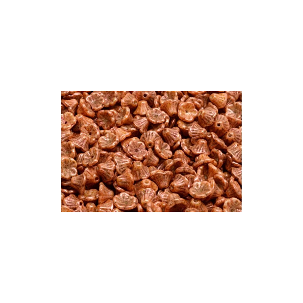 Terakotová barva s jemným žíháním dodává těmto květinovým zvonečkům o rozměru 7 x 5 mm nezaměnitelný přírodní vzhled. Skleněné korálky od českého výrobce Rutkovsky vynikají detailními rýhami, které věrně simulují okvětní lístky. Výborně poslouží pro tvorbu jemných náušnic, kde jako středové prvky v květinových motivech skvěle doplní skleněné kuličky.