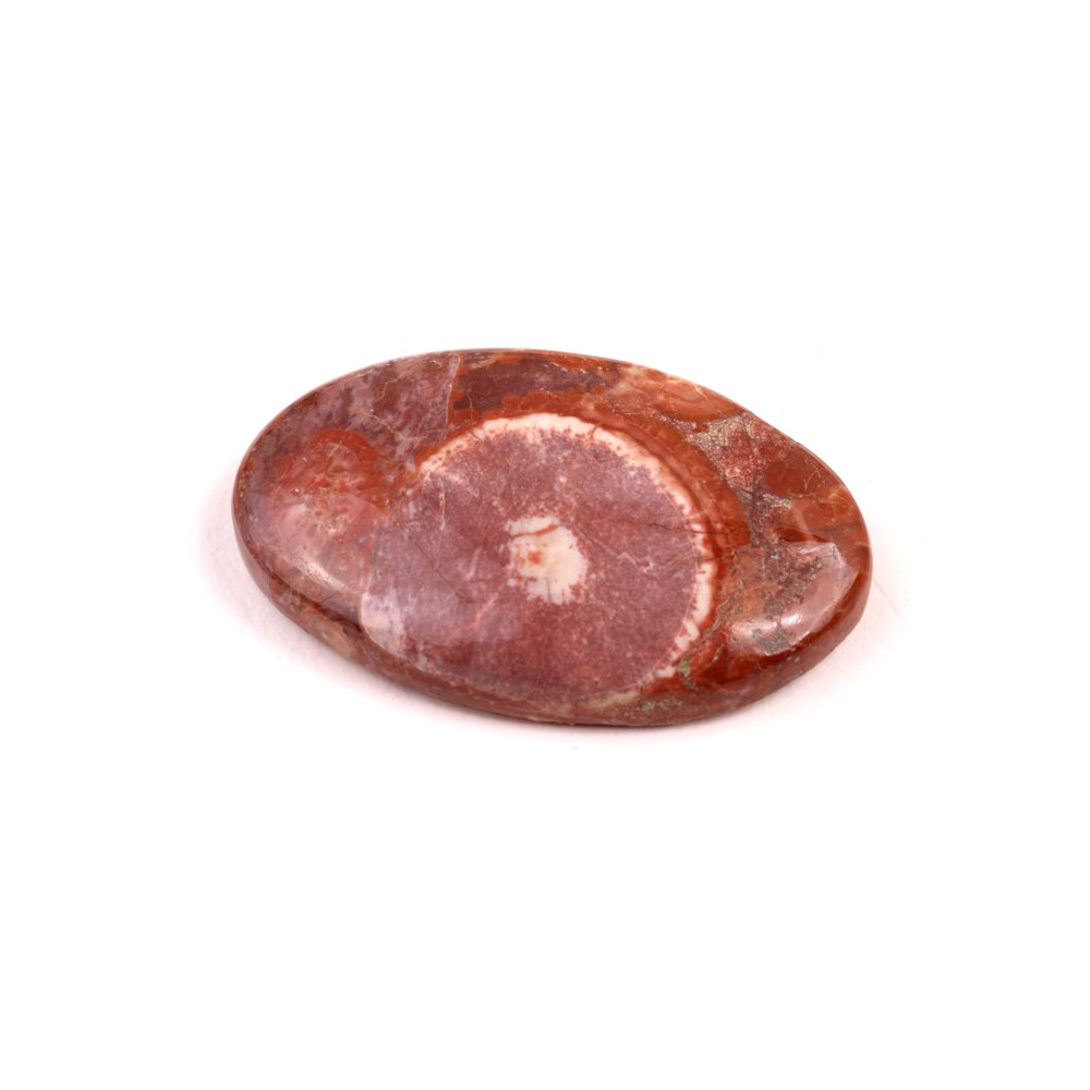 Kabošon z přírodního kamene Birds Eye Jasper (Očkový jaspis) upoutá svými jedinečnými vzory, které připomínají oči či drobné kruhy, jež přirozeně zdobí jeho povrch. Tento fascinující kámen v teplých odstínech hnědé a červené přináší do šperků nádech exotiky a mystiky. Birds Eye Jasper je známý jako kámen ochrany a stability, který dodává odvahu a podporuje emoční rovnováhu.