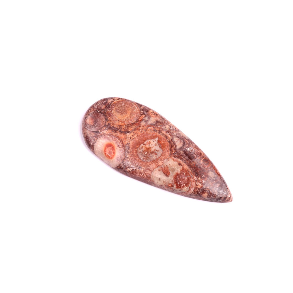 Kabošon z přírodního kamene Birds Eye Jasper (Očkový jaspis) upoutá svými jedinečnými vzory, které připomínají oči či drobné kruhy, jež přirozeně zdobí jeho povrch. Tento fascinující kámen v teplých odstínech hnědé a červené přináší do šperků nádech exotiky a mystiky. Birds Eye Jasper je známý jako kámen ochrany a stability, který dodává odvahu a podporuje emoční rovnováhu.