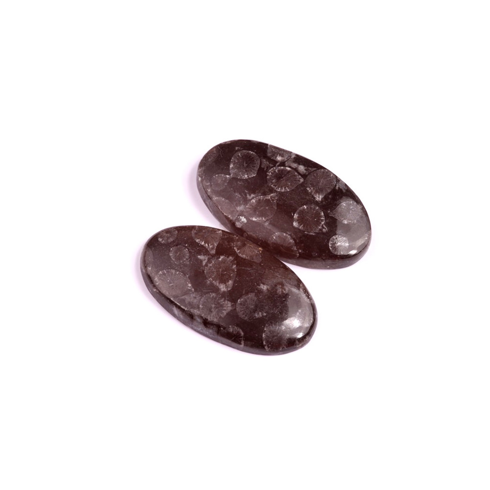 Párové kabošony z přírodního kamene Black Fossil Coral Velikost jednoho kusu cca 37x25x7 mm...