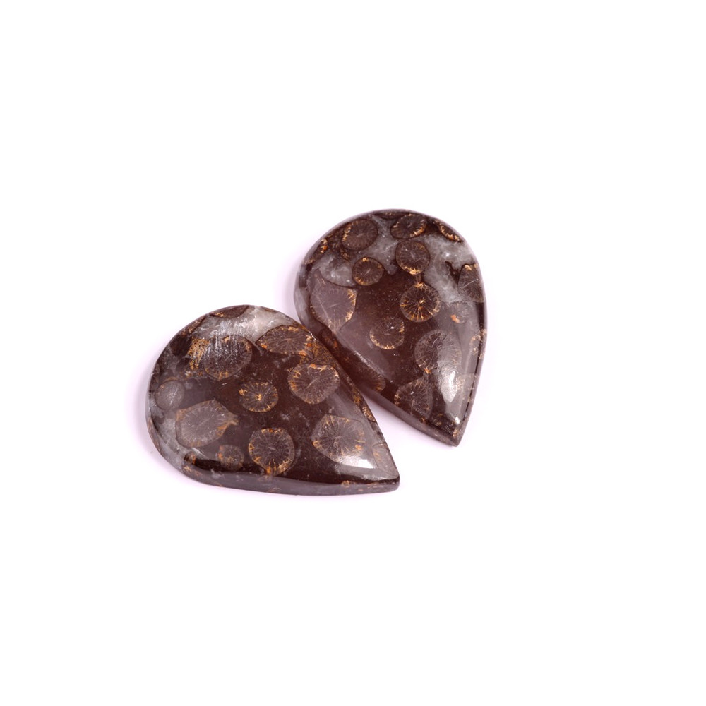 Párové kabošony z přírodního kamene Black Fossil Coral Velikost jednoho kusu cca 39x21x7mm Cena...