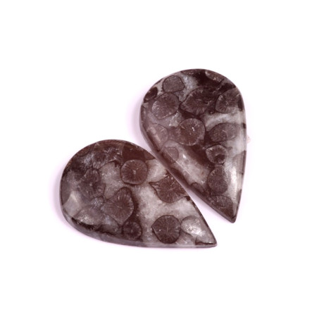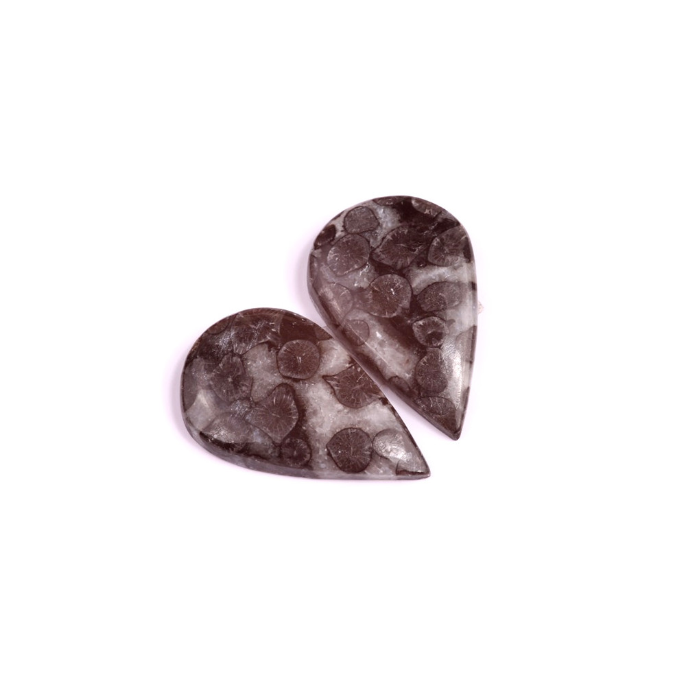 Párové kabošony z přírodního kamene Black Fossil Coral