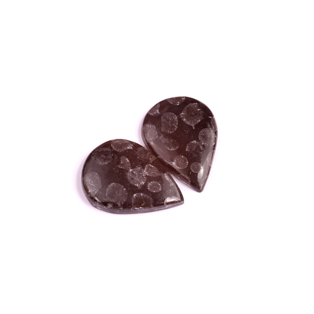 Párové kabošony z přírodního kamene Black Fossil Coral Velikost jednoho kusu cca 34x23x5 mm...