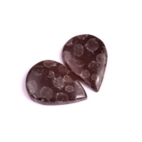 Párové kabošony z přírodního kamene Black Fossil Coral