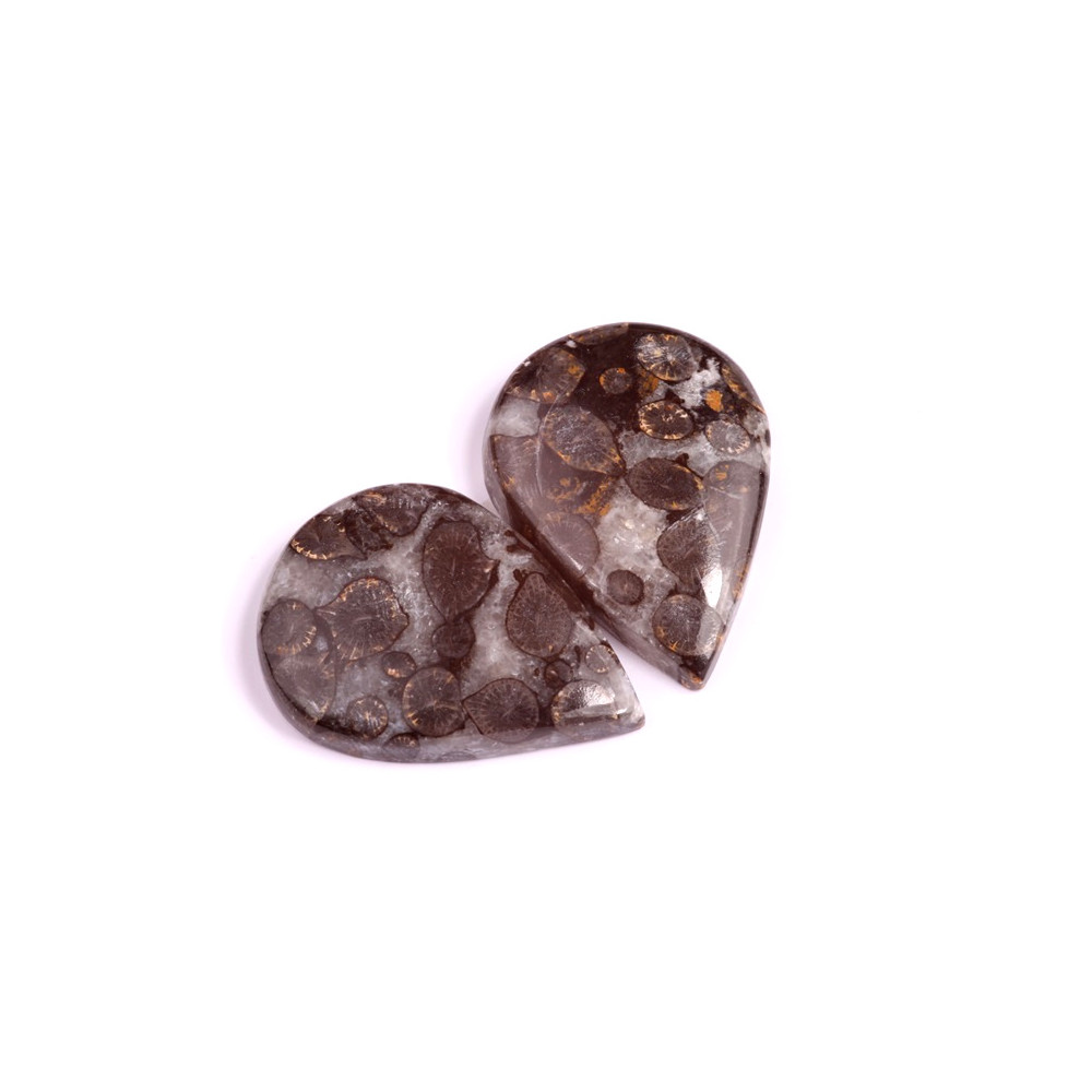 Párové kabošony z přírodního kamene Black Fossil Coral
