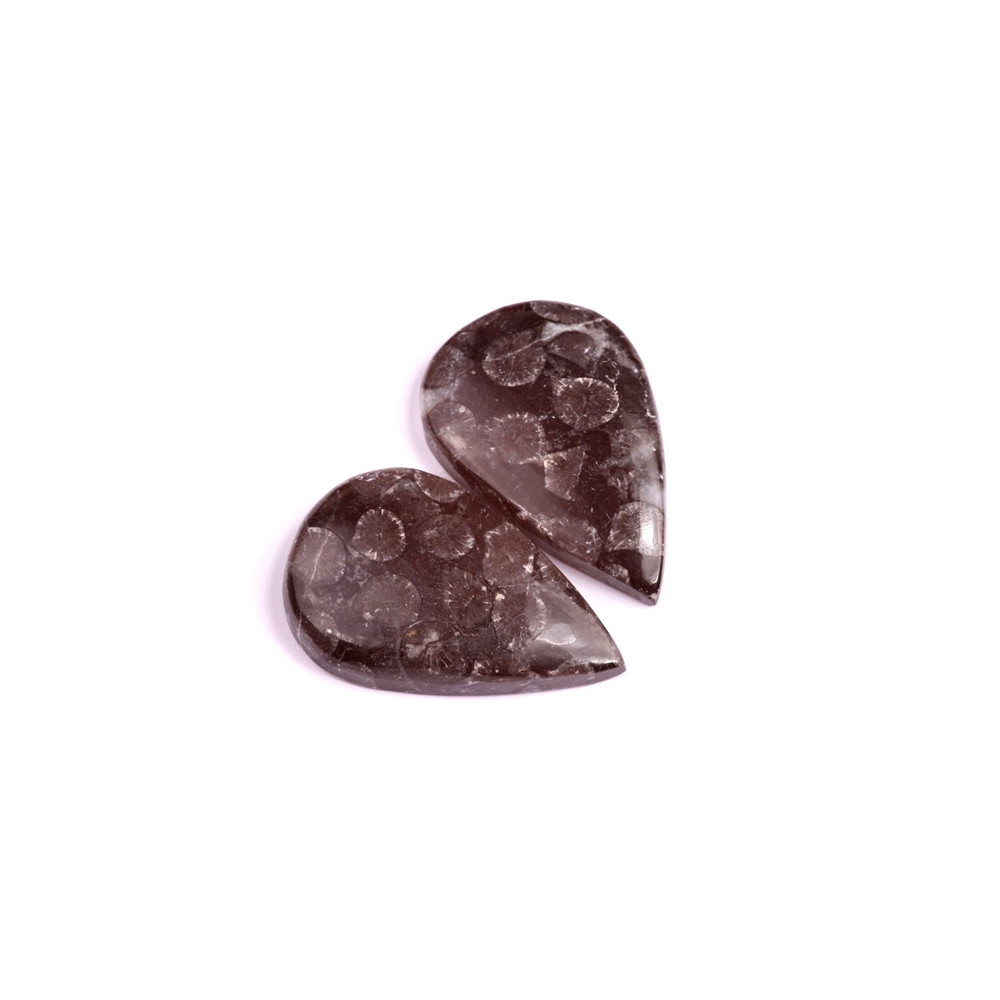 Párové kabošony z přírodního kamene Black Fossil Coral Velikost jednoho kusu cca 37x25x7 mm...