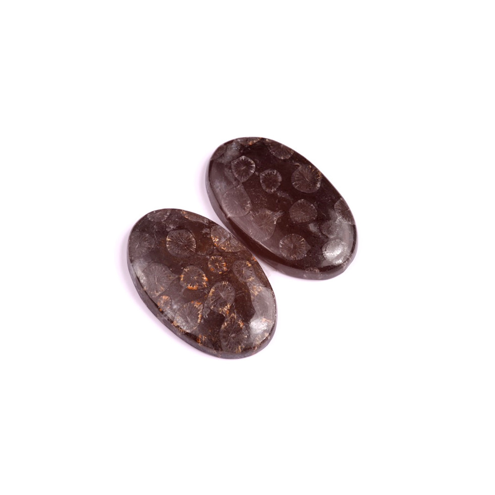 Párové kabošony z přírodního kamene Black Fossil Coral Velikost jednoho kusu cca 37x26x7 mm...