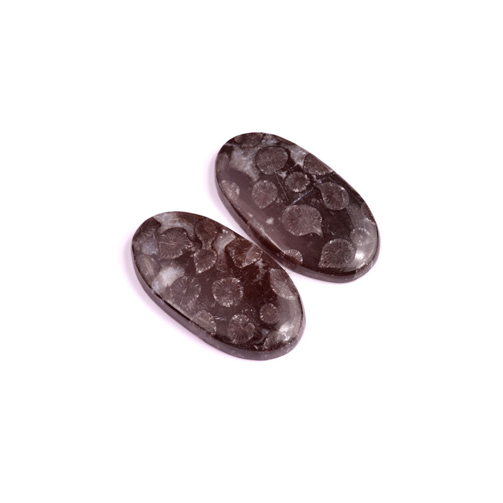 Párové kabošony z přírodního kamene Black Fossil Coral Velikost jednoho kusu cca 32x23x6 mm...