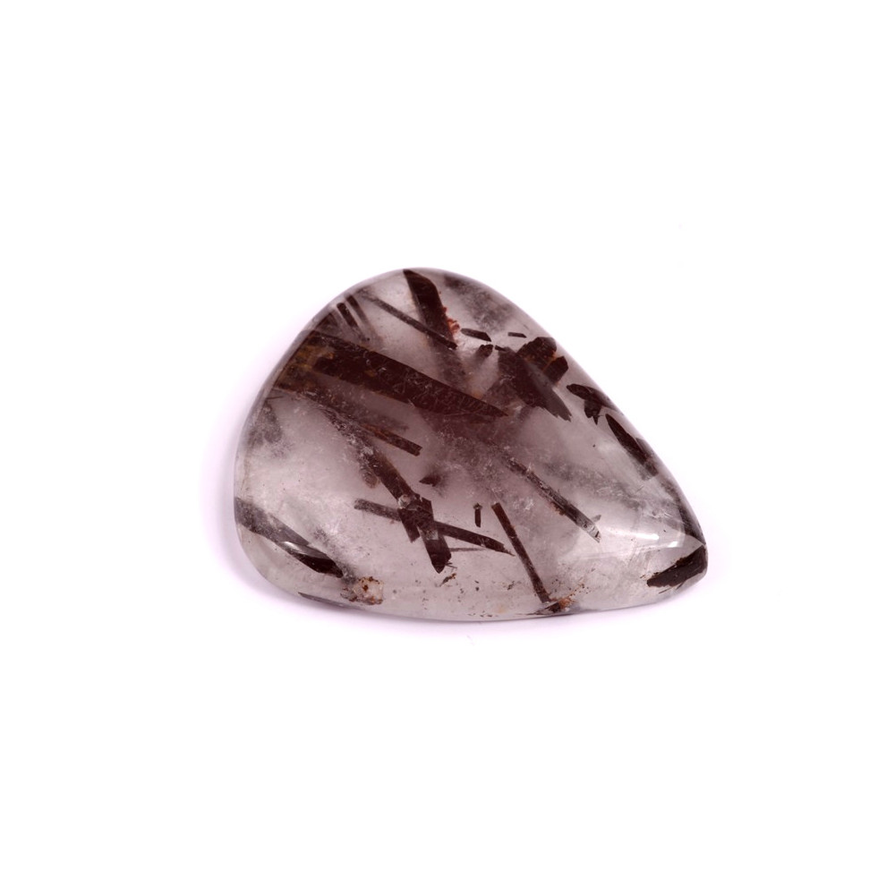 Kabošon z přírodního kamene Black Rutile je fascinujícím kamenem, který zaujme svými unikátními černými jehličkovými inkluzemi rutilu zasazenými v čirém nebo jemně zakaleném křemeni. Tento kámen je známý jako symbol ochrany a síly, který pomáhá rozvíjet pozitivní energii a zbavit se negativních emocí. Black Rutile je ideální pro šperky, které mají vyzařovat mystiku a jedinečný styl.