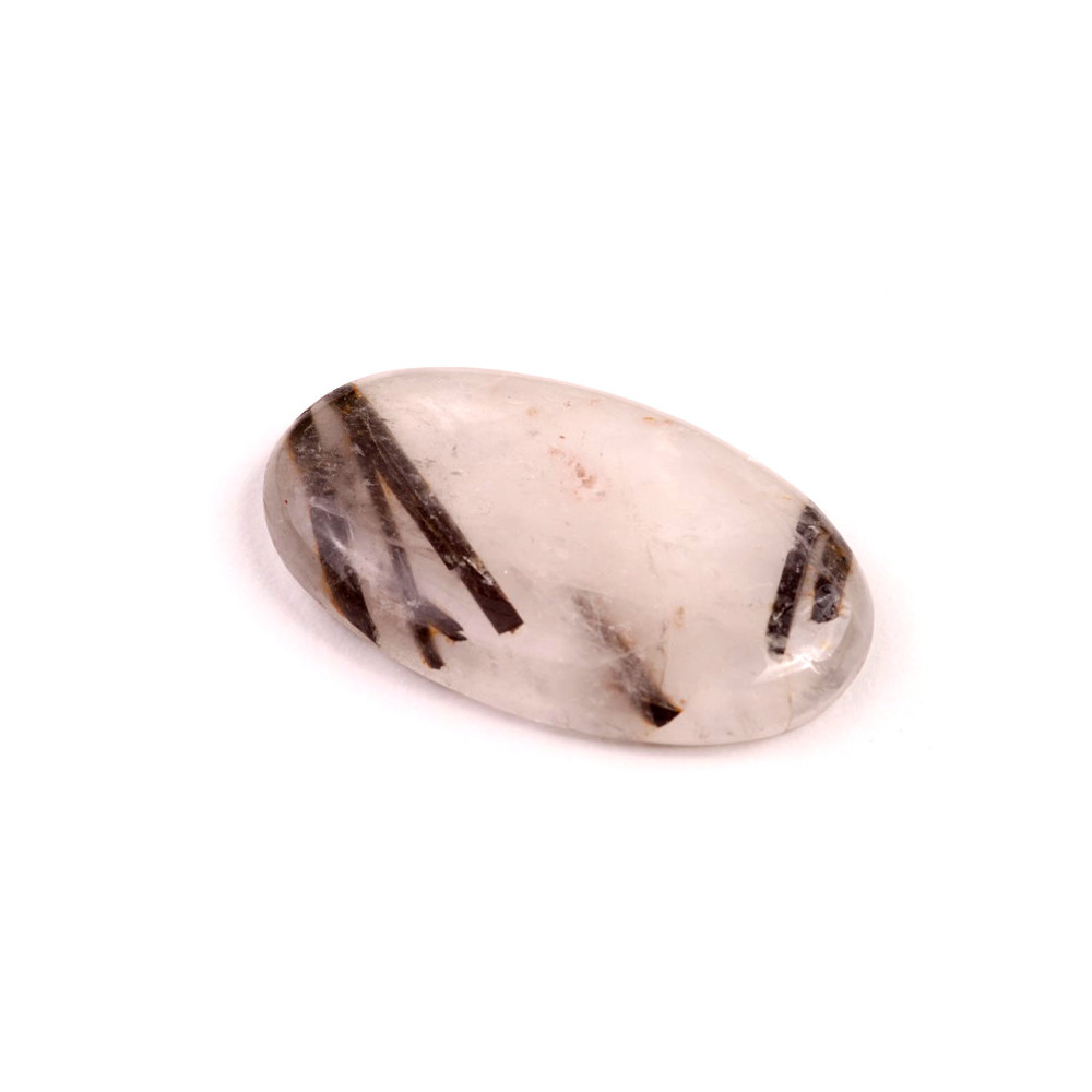Kabošon z přírodního kamene Black Rutile je fascinujícím kamenem, který zaujme svými unikátními černými jehličkovými inkluzemi rutilu zasazenými v čirém nebo jemně zakaleném křemeni. Tento kámen je známý jako symbol ochrany a síly, který pomáhá rozvíjet pozitivní energii a zbavit se negativních emocí. Black Rutile je ideální pro šperky, které mají vyzařovat mystiku a jedinečný styl.