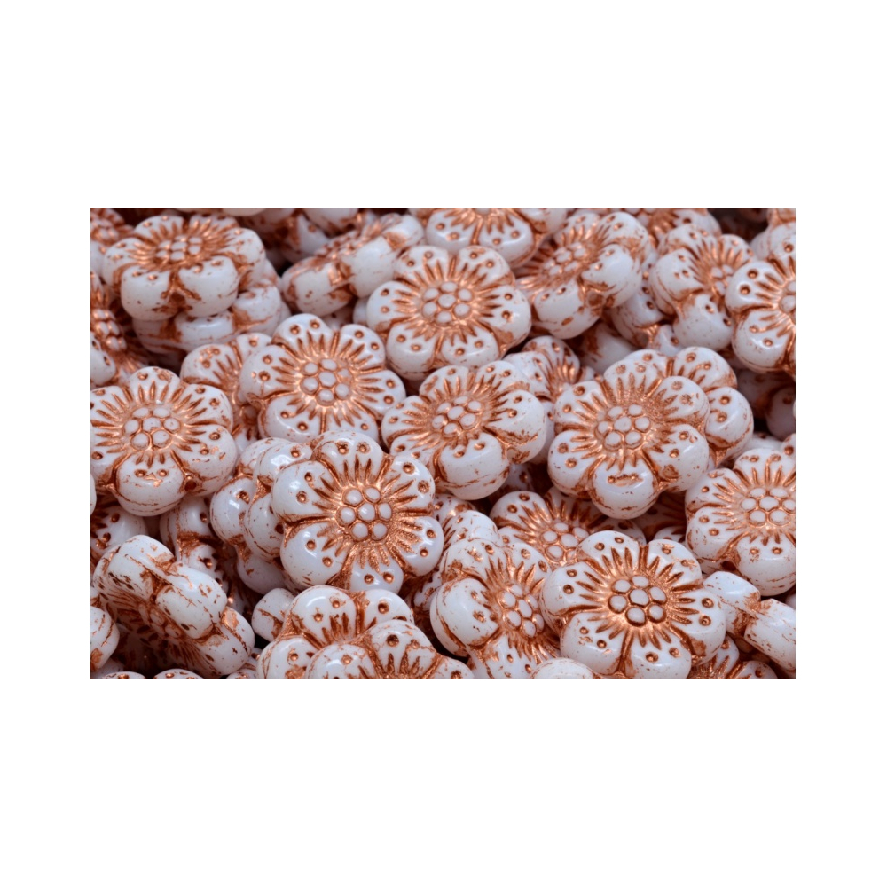 České mačkané skleněné korálky Kytičky Boho 14x14 mm od výrobce Rutkovský. Každý korálek je jako malá květinka, která září svou jedinečností a uměleckým duchem.