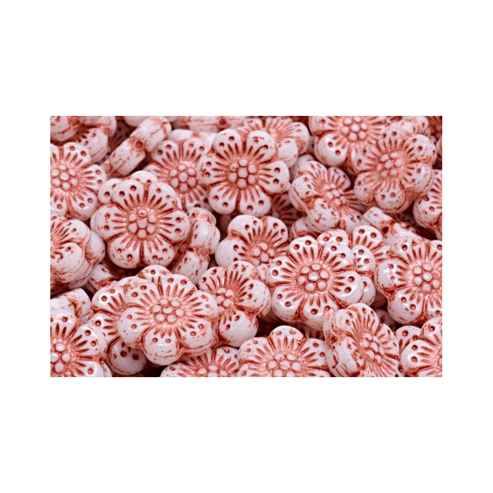České mačkané skleněné korálky Kytičky Boho 14x14 mm od výrobce Rutkovský. Každý korálek je jako malá květinka, která září svou jedinečností a uměleckým duchem.