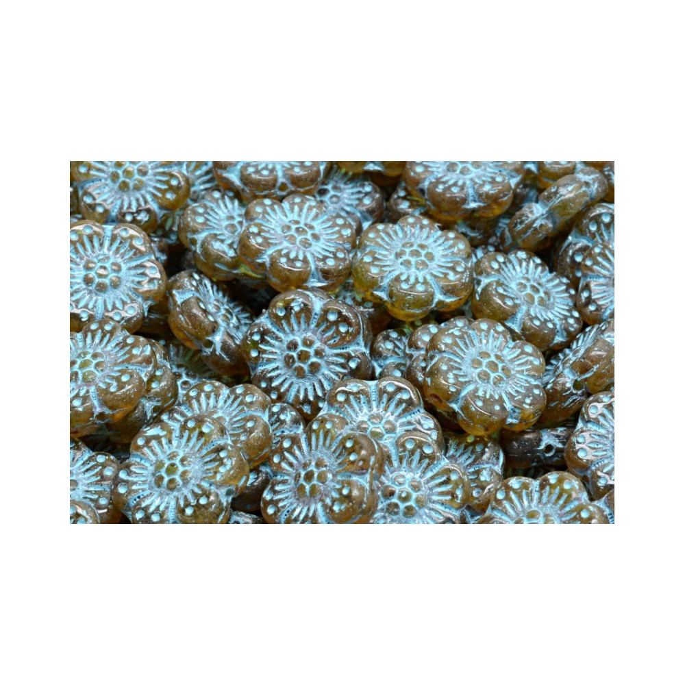 České mačkané skleněné korálky Kytičky Boho 14x14 mm od výrobce Rutkovský. Každý korálek je jako malá květinka, která září svou jedinečností a uměleckým duchem.