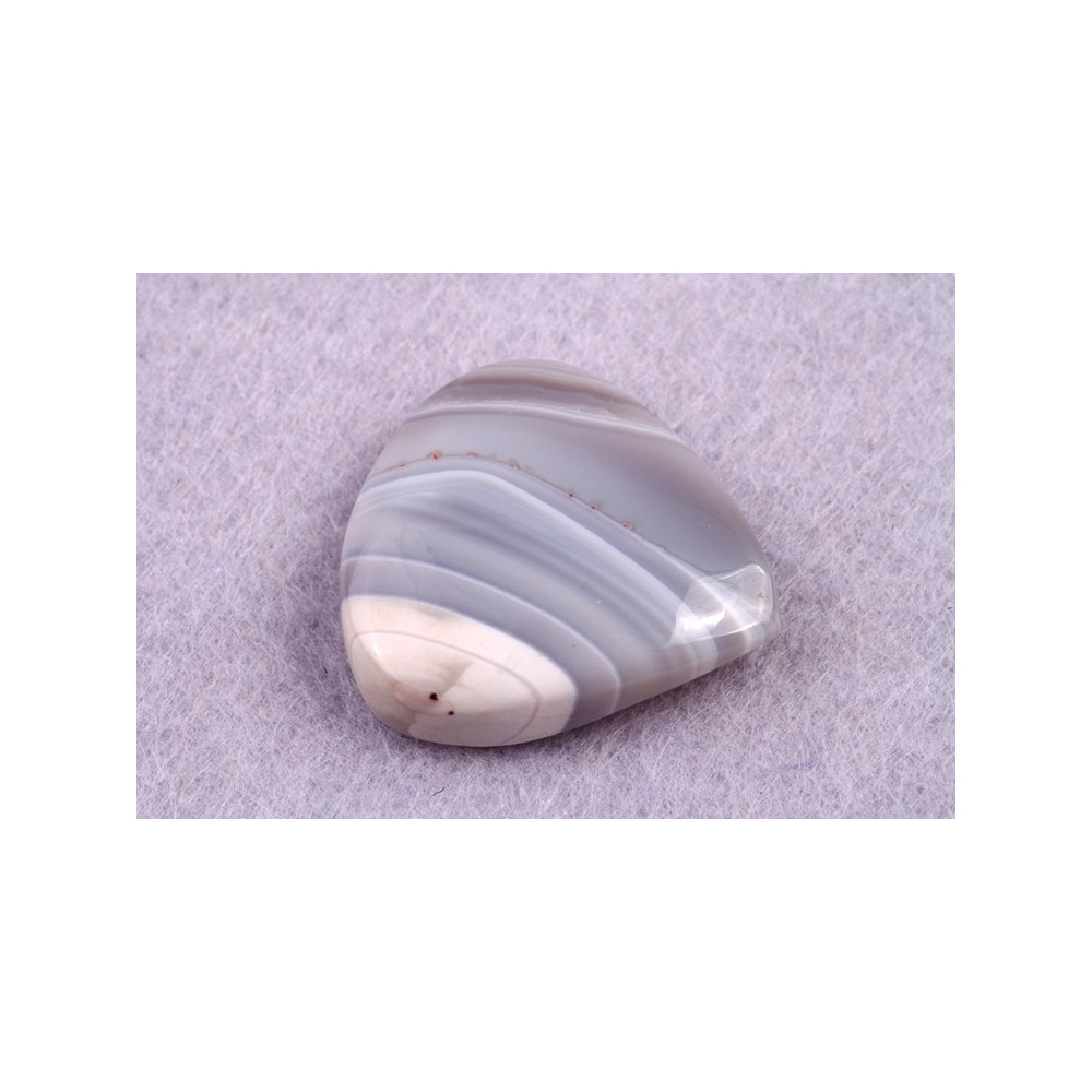 Achát Botswana je nádherný kámen s jemnými pruhy a unikátními přechody barev, které zahrnují odstíny šedé, růžové a někdy i krémové a bílé. Tento přírodní kabošon pochází z jedinečného naleziště v Botswaně, kde vznikal po miliony let v důsledku vulkanické činnosti. Proužkovaný vzor je výsledkem usazování minerálů v jednotlivých vrstvách, které vytvářejí tento charakteristický vzhled.