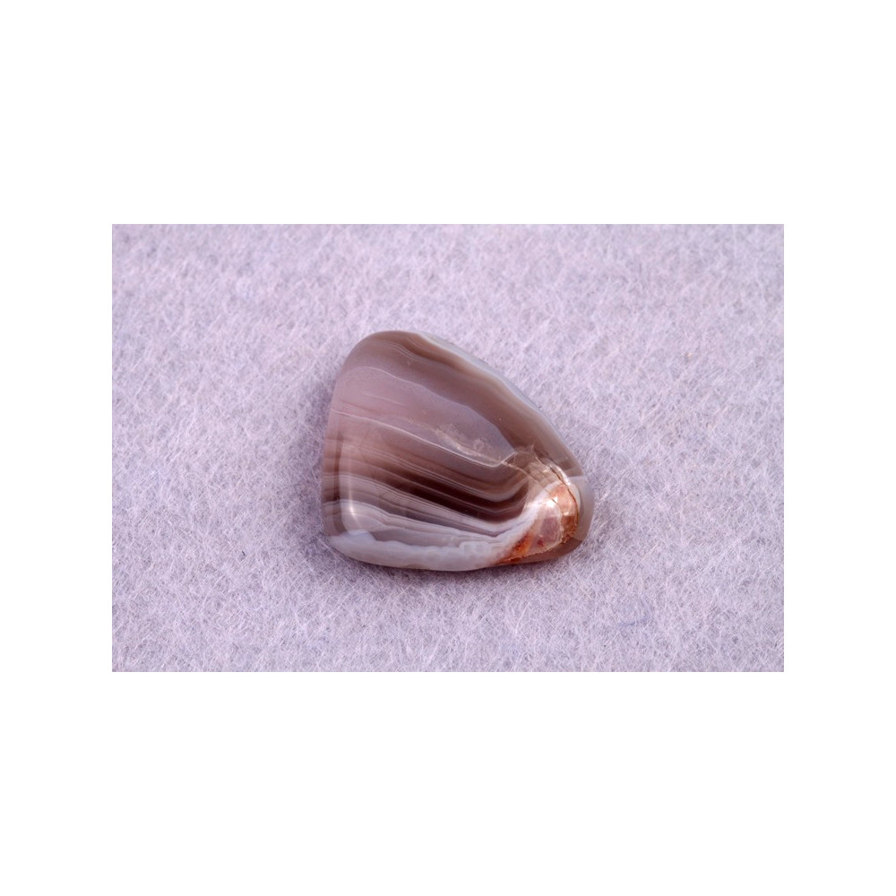 Achát Botswana je nádherný kámen s jemnými pruhy a unikátními přechody barev, které zahrnují odstíny šedé, růžové a někdy i krémové a bílé. Tento přírodní kabošon pochází z jedinečného naleziště v Botswaně, kde vznikal po miliony let v důsledku vulkanické činnosti. Proužkovaný vzor je výsledkem usazování minerálů v jednotlivých vrstvách, které vytvářejí tento charakteristický vzhled.