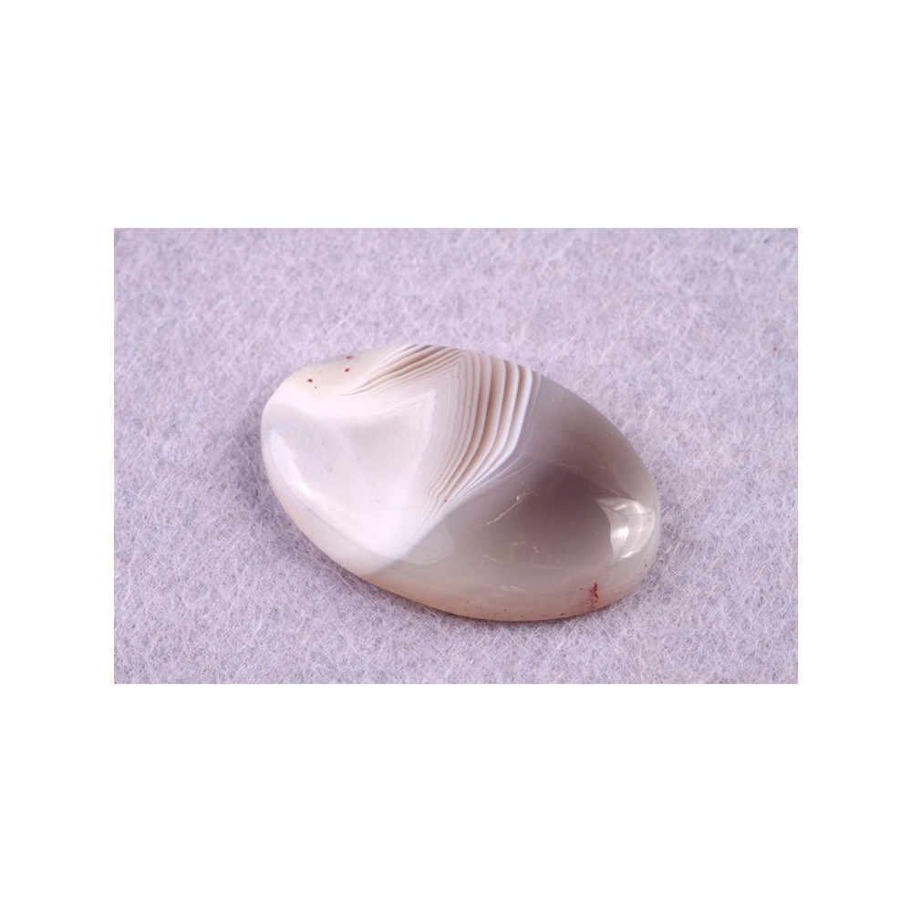 Achát Botswana je nádherný kámen s jemnými pruhy a unikátními přechody barev, které zahrnují odstíny šedé, růžové a někdy i krémové a bílé. Tento přírodní kabošon pochází z jedinečného naleziště v Botswaně, kde vznikal po miliony let v důsledku vulkanické činnosti. Proužkovaný vzor je výsledkem usazování minerálů v jednotlivých vrstvách, které vytvářejí tento charakteristický vzhled.