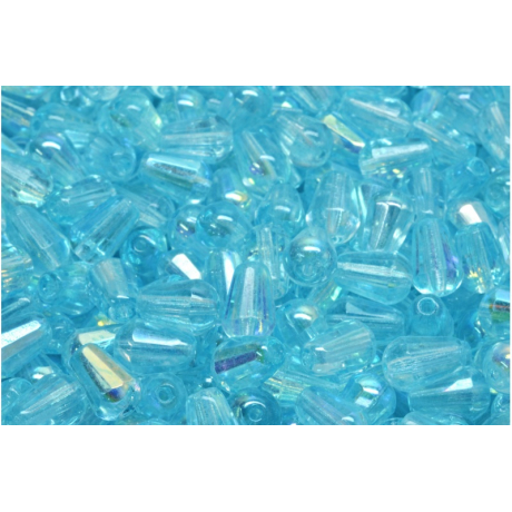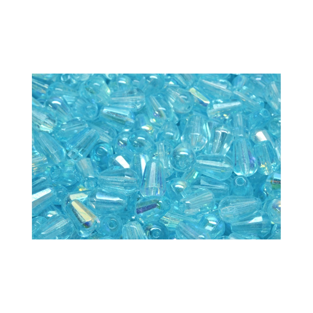 Světle modrá barva v odstínu akvamarínu v kombinaci s povrchovou úpravou AB (Aurora Borealis) vytváří na povrchu korálků fascinující hru duhových odlesků. Tyto Firepolished Drop Beads jsou vyráběny tradiční technikou broušení a následného ohňového leštění, což jim dodává vysoký lesk a hladké hrany, které nepoškozují návlekový materiál. Každý kus v balení 15 ks reprezentuje poctivé české sklářství.