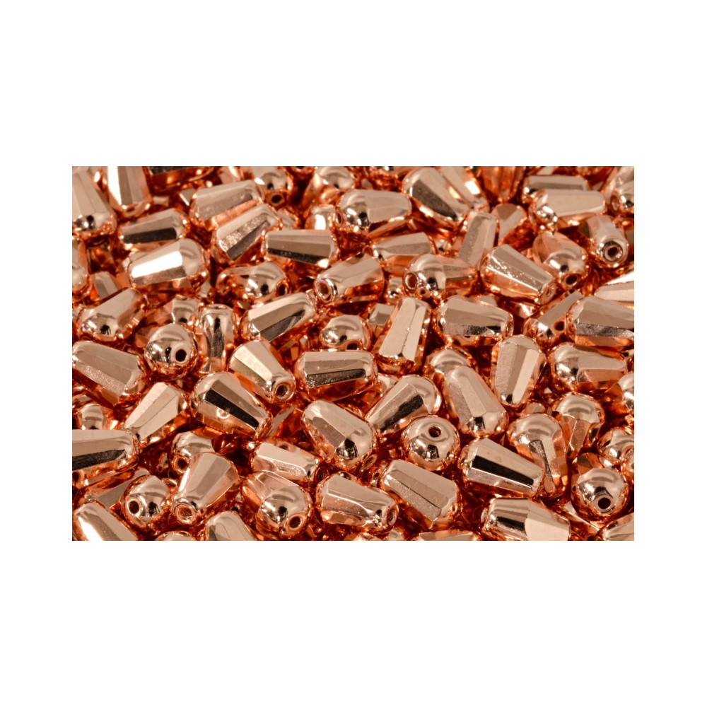 Rose gold metalický povrch a precizní fasetový brus definují tyto Firepolished Drop Beads o rozměru 8 x 6 mm. Tyto české skleněné korálky pocházejí z rodinné tradice značky Rutkovský, kde se klade důraz na ruční lisování a následné ohněm leštěné hrany, které zajišťují vysoký lesk a odolnost povrchové úpravy. Průtah o průměru 0,8 mm je naprosto konzistentní napříč celou šarží, což umožňuje plynulé navlékání a profesionální výsledky při tvorbě autorské bižuterie.