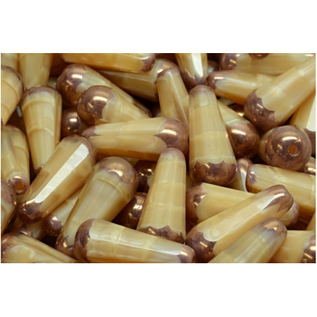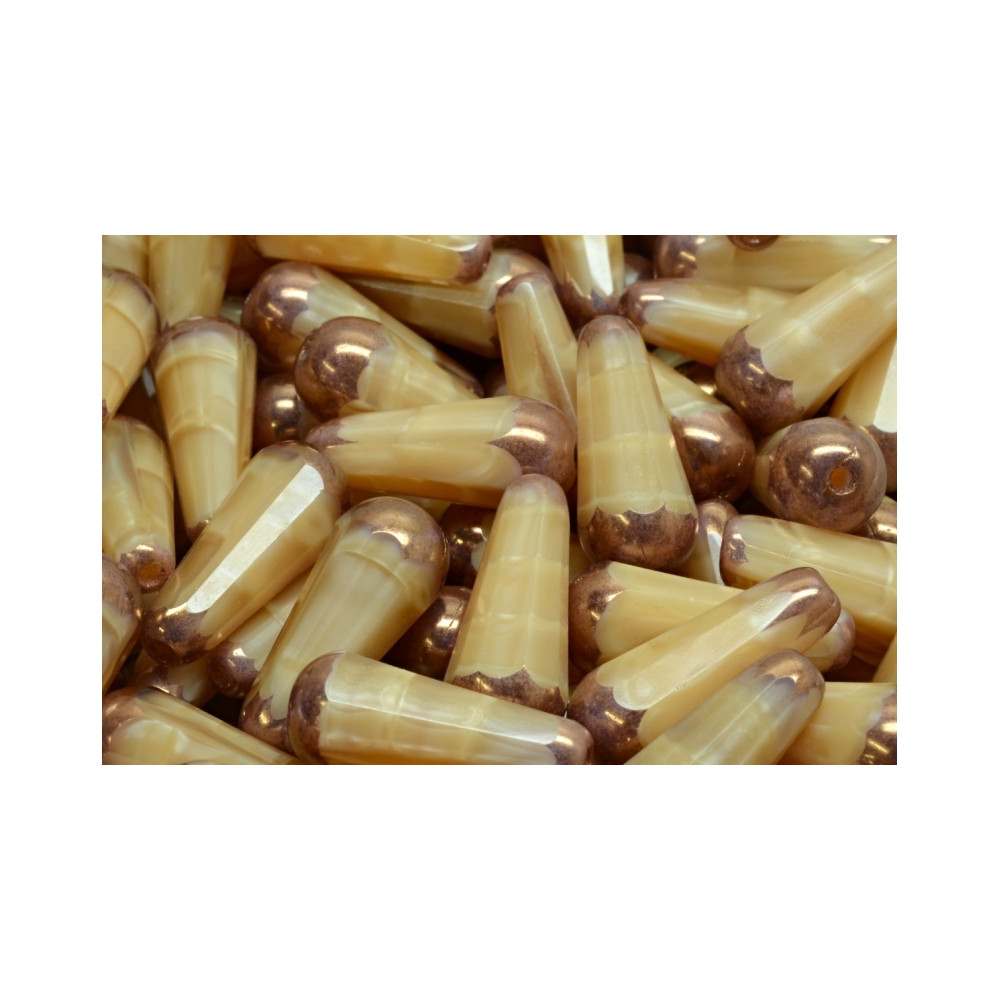 Béžová barva v kombinaci s metalickým měděným zakončením 16007-14415 vytváří luxusní starožitný vzhled, který je velmi žádaný v současné šperkařské tvorbě. Tyto české skleněné korálky vynikají svou hloubkou a jemným odleskem, který se mění v závislosti na dopadu světla na broušené plochy. Povrchová úprava typu luster zajišťuje dlouhou životnost a stálost barev i při každodenním nošení šperku.