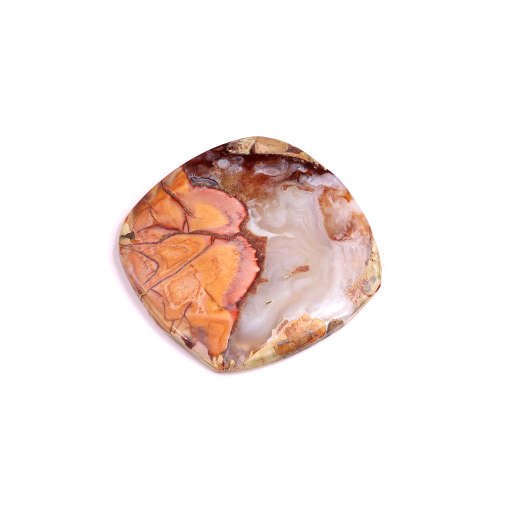 Butterfly Jasper je fascinující a jedinečný kámen, který přináší přírodní krásu do vašich šperkařských projektů. Tento kabošon je skutečným uměleckým dílem, jehož bohaté oranžovo-červené odstíny se prolínají s jemnými béžovými a šedými tóny, což připomíná fascinující struktury motýlích křídel. Právě tento vzor a barevné přechody dělají z Butterfly Jasper kabošonu ideální volbu pro šperkaře, kteří hledají originální materiál plný života a hloubky.