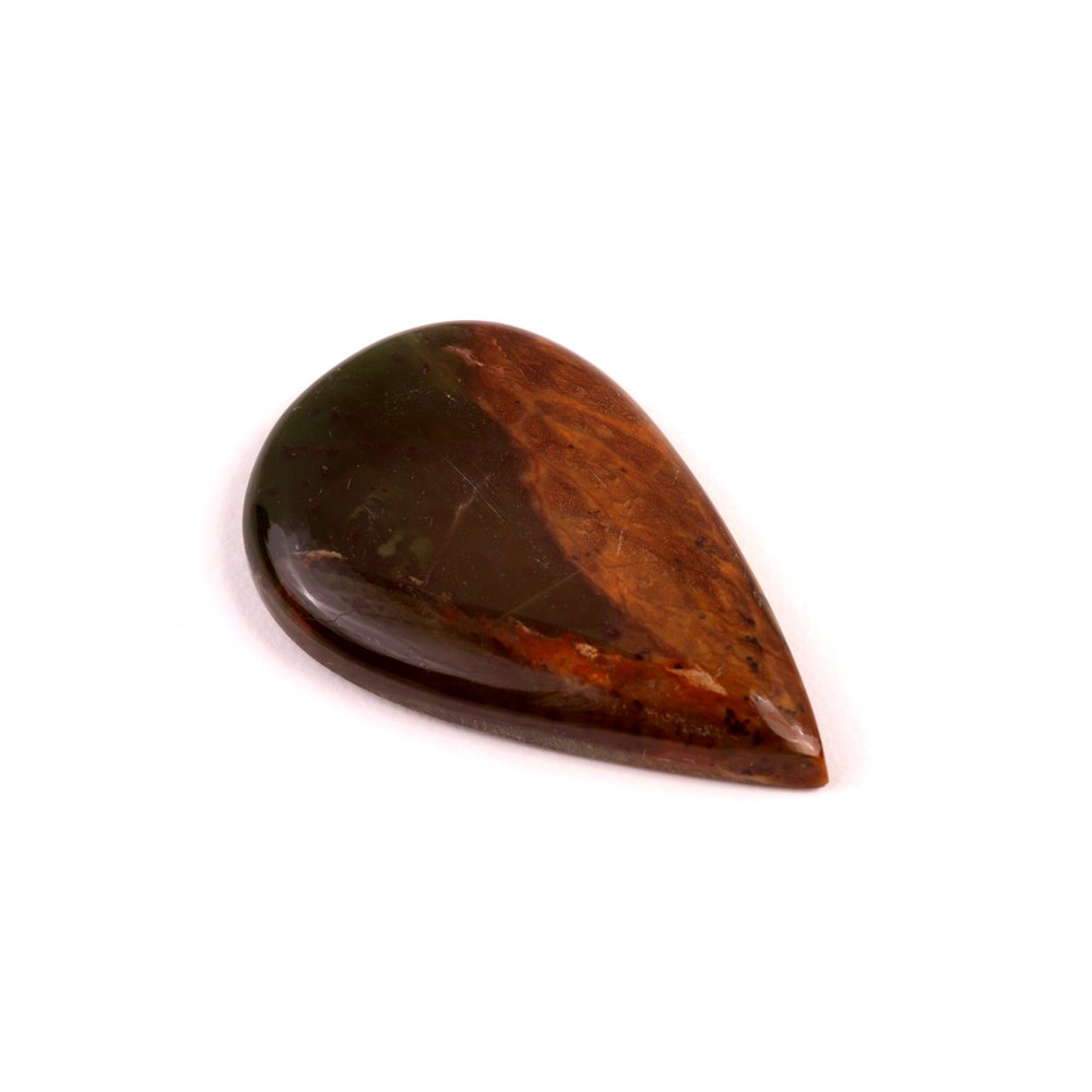 Kabošon z přírodního kamene Chrome Chalcedon (Chromový chalcedon) představuje unikátní a vzácný šperk přímo z přírody. Tento minerál je obdivován pro své jemné odstíny zelené až hnědé, které vznikají díky obsahu chromu. Každý kabošon je originální díky svým přírodním vzorům a kresbě, která připomíná malířské dílo.