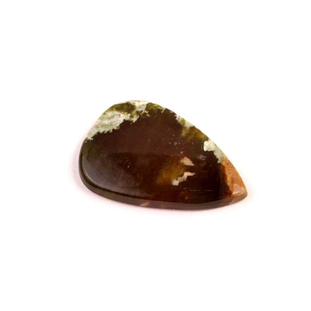 Kabošon z přírodního kamene Chrome Chalcedon (Chromový chalcedon) představuje unikátní a vzácný šperk přímo z přírody. Tento minerál je obdivován pro své jemné odstíny zelené až hnědé, které vznikají díky obsahu chromu. Každý kabošon je originální díky svým přírodním vzorům a kresbě, která připomíná malířské dílo.