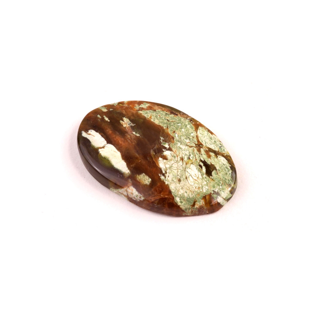 Kabošon z přírodního kamene Chrome Chalcedon (Chromový chalcedon) představuje unikátní a vzácný šperk přímo z přírody. Tento minerál je obdivován pro své jemné odstíny zelené až hnědé, které vznikají díky obsahu chromu. Každý kabošon je originální díky svým přírodním vzorům a kresbě, která připomíná malířské dílo.