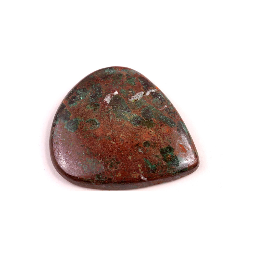Kabošon z přírodního kamene chrysocolla je nádherným výtvorem přírody, který do vašich šperků vnese hluboký odstín zelené, často s jemnými modrými a tyrkysovými prvky. Chrysocolla je ceněna pro své uklidňující účinky a schopnost přinášet do života klid a harmonii. Tento minerál je známý svým působením na zklidnění emocí a podporu pozitivního myšlení, což z něj je ideální kámen pro meditativní a relaxační účely.